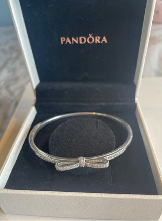 Pulsera original de Pandora rígida de plata con forma de lazo y circonitas. Está completamente nueva, sin estrenar. La vendo con la caja original. Actualmente descatalogada