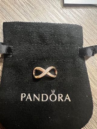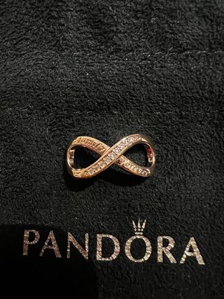Charm colgante lazo infinito en plata selloS925 banado en oro rosa con circonitas blancas,con un mensaje FAMILY FOREVER. Precioso para una pulsera o collar. No es de la marca Pandora. Fue un regalo de la tienda de joyería Oro Vivo, está sin estrenar.Lo puedo entregar en caja de regalo bien presentado. Pregunten sin compromiso.