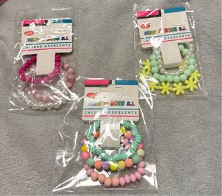 Conjunto de 3 pulseras para niñas. - Pulseras de cuentas de varios colores. - Diseño divertido y llamativo.