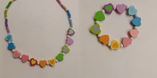 Conjunto de bisutería infantil compuesto por un colgante y una pulsera. - Diseño con cuentas de colores y abalorios en forma de corazón. - Ideal para niñas.