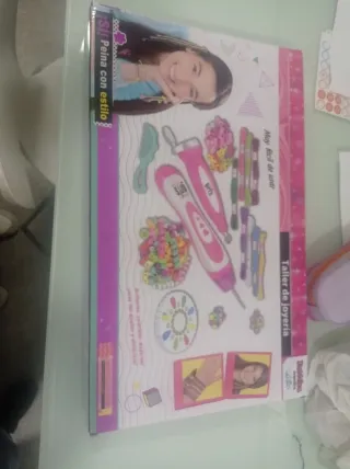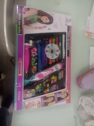 Kit para crear pulseras y accesorios de moda. - Incluye herramientas para trenzar y ensartar. - Variedad de cuentas y hilos de colores.