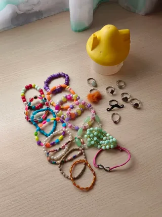 Conjunto de pulseras variadas, ideales para niños y niñas. - Diseños coloridos y divertidos. - Cuentas de diferentes formas y tamaños. - Algunas pulseras con detalles de abalorios y dijes. - Cierre ajustable para mayor comodidad.
