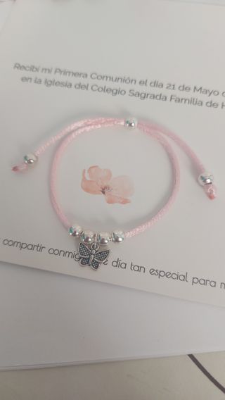 Perfecto para regalar como detalle en una celebración de Bautizo, Comunión, Boda... cordel en diferentes colores y diferentes charms (Mariposas, estrellas, lunas, flores, corazones, niño y niña...) Se pueden hacer con la plaquita de la inicial de cada persona. Preguntame sin compromiso.