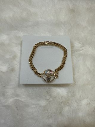 ¿Buscas un detalle especial y duradero para una niña? Vendo esta preciosa pulsera para la muñeca, fabricada con material goldfilled de alta calidad. Características principales: Material Goldfilled (Oro Laminado): Un material superior a la bisutería tradicional. Consiste en una capa gruesa de oro real unida a un metal base, lo que garantiza una larga duración y resistencia al desgaste diario. Hipoalergénico: Perfecto para pieles sensibles, evitando las típicas irritaciones de otras bisuterías. Diseño Elegante: Cadenitas delicadas con detalles brillantes de pedrería. Ajustable: Cierre práctico y seguro para adaptar a diferente tamaño