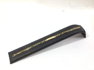 Preciosa pulsera de oro de 18k para niña, con placa para grabar nombre. Es una pieza delicada y luce en perfecto estado. - Material: oro de 18k. - Contiene una placa grabada con el nombre ELENA. - Adornada con pequeños brillantes.