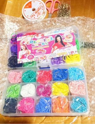 Kit para hacer pulseras y bisutería con mini cuentas de cristal. Ideal para niños y actividades creativas. - Cuentas de cristal en varios colores. - Componentes para pulseras. - Cierres y anillas. - Tijeras. - Hilo elástico Es lo que hay en la ultima foto, NUEVO sin abrir ningún uso