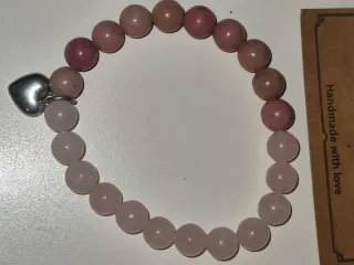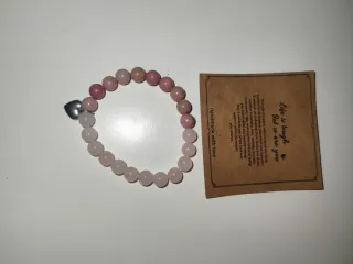 Bonita pulsera con cuentas rosas y un charm de corazón plateado. - Diseño elástico. - Cuentas de piedra. - Charm de corazón. - Pulsera de amor, suerte, protector. -Ritualizada Ideal Regalo, Navidad, Amigo invisible, parejas. - Preparo para regalo