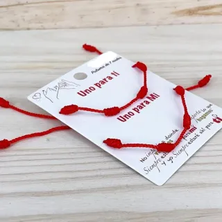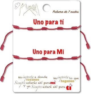 Conecta con el lazo más especial gracias a este par de pulseras artesanales de hilo rojo con la técnica de “7 nudos”, diseñadas para compartir en pareja, amistad o cualquier vínculo significativo. Hechas a mano con hilo resistente y cierre ajustable, permiten adaptarse cómodamente a muñecas de diferentes tamaños. El rojo simboliza la protección y la buena energía, mientras que los siete nudos representan fuerza, equilibrio y una conexión más profunda. Ligeras y discretas, se pueden llevar solas como símbolo afectivo o combinadas con otras pulseras para un estilo personalizado y con intención. Perfectas como regalo cargado ...