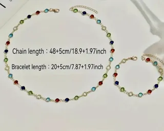 🌞Elegante Conjunto de Collar y Pulsera adornado con Cristales Redondos de colores. - Regalo Navidad - Diseño delicado y brillante. - Cadena Dorada - Cristales en tonos variados. -ALgo Especial para Mujer, Pareja, Amiga, Hija