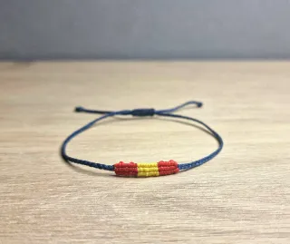 Pulsera azul marino y minimal hecha a mano con hilo encerado, con la Bandera de España. Ligera, discreta y cómoda para usar a diario — combina con todo. ✨ Ajustable (se adapta a cualquier muñeca) ✨ Hilo encerado resistente ✨ Ideal como regalo o para llevar en pareja / amigos Hago pedidos de varias piezas, como ferias, equipos, celebraciones etc, con descuento por lotes, pregúntame sin compromiso😉
