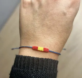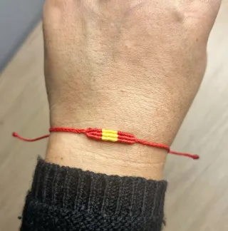 Pulsera roja y minimal hecha a mano con hilo encerado, con la Bandera de España. Ligera, discreta y cómoda para usar a diario — combina con todo. ✨ Ajustable (se adapta a cualquier muñeca) ✨ Hilo encerado resistente ✨ Ideal como regalo o para llevar en pareja / amigos Hago pedidos de varias piezas, como ferias, equipos, celebraciones etc, con descuento por lotes, pregúntame sin compromiso😉