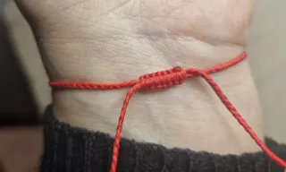 Pulsera de hilo rojo con nudos, diseñada para atraer energías positivas y buena suerte. Protege contra el mal de ojo y las energías negativas. - Ayuda a atraer energías positivas y buena suerte. - Protege contra el mal de ojo y energías negativas. - Crea unión entre portadores, parejas, familia y amigos. - Ideal como regalo espiritual para ocasiones especiales. - Debe ser atada en la mano izquierda por alguien que te aprecie.