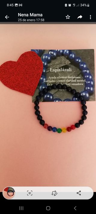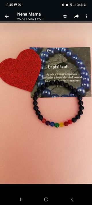 Es un mineral que limpia mente, cuerpo y espíritu de toxinas y negativas. Ayuda contra el insomnio, disminuye el estrés y nos da sensación de paz. Mejora la memoria y el conocimiento ya que nos aporta confianza y claridad mental. Nos da fuerzas para expresar los sentimientos reprimidos. Fortalece y mejora las relaciones de pareja. Ayuda al aparato respiratorio y fortalece los huesos. Descongestiona la parte de la garganta.. puedes mirar en mí perfil tengo más pulseras, colgantes, incienso. etc