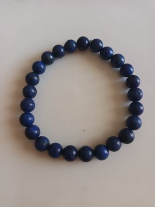 Pulsera elaborada con cuentas de lapislázuli. - Diámetro de las cuentas: 6mm. Es un mineral que limpia mente, cuerpo y espíritu de toxinas negativas. Ayuda contra el insomnio, disminuye el estrés y nos da sensación de paz. Mejora la memoria y el conocimiento ya que nos aporta confianza y claridad mental. Nos da fuerzas para expresar los sentimientos reprimidos. Fortalece y mejora las relaciones de pareja. Ayuda al aparato respiratorio y fortalece los huesos. Descongestiona la parte de la garganta.
