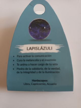 Lapislázuli. Es un mineral que limpia mente, cuerpo y espíritu de toxinas y negativas. Ayuda contra el insomnio, disminuye el estrés y nos da sensación de paz. Mejora la memoria y el conocimiento ya que nos aporta confianza y claridad mental. Nos da fuerzas para expresar los sentimientos reprimidos. Fortalece y mejora las relaciones de pareja. Ayuda al aparato respiratorio y fortalece los huesos. Descongestiona la parte de la garganta.