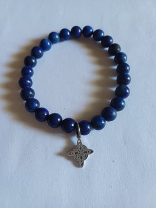 Preciosa pulsera de lapislázuli, una piedra preciosa azul intenso. Incluye un dije de plata con diseño de nudo celta. - Elegante y delicada. - Ideal para cualquier ocasión. - Perfecta para añadir un toque de estilo a tu look. Lapislázuli es un abrecaminos, Es un mineral que limpia mente, cuerpo y espíritu de toxinas y negativas. Ayuda contra el insomnio, disminuye el estrés y nos da sensación de paz. Mejora la memoria y el conocimiento ya que nos aporta confianza y claridad mental. Nos da fuerzas para expresar los sentimientos reprimidos. Fortalece y mejora las relaciones de pareja. Ayuda al aparato respiratorio.
