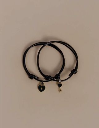 Pulsera para pareja, amigos, novio o novia. Perfecto para aniversario o cumpleaños. Correa negra con símbolos corazón y llave. El precio incluye el pack de las 2 pulseras. Totalmente nuevas. Entrega en mano o envío.