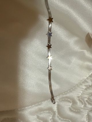 Elegante pulsera con un diseño delicado de estrellas. - Cadena tipo serpiente. - Adornos en forma de estrella. - Cierre de mosquetón.