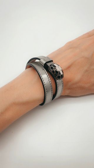 Pulsera Bvlgari Serpenti metalizada de segunda mano en excelente estado, sin apenas signos de uso. Inspirada en el icónico símbolo de la serpiente, esta pieza encarna la elegancia atemporal y el poder seductor característico de la colección Serpenti de Bvlgari. Con una talla S/M, esta pulsera se adapta cómodamente a la muñeca, aportando un toque de sofisticación y estilo inconfundible. Se entrega con su caja original, lo que garantiza su autenticidad y la convierte en una opción perfecta tanto para lucir como para regalar. Madrid 5442.