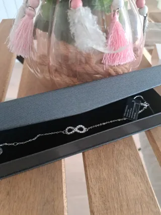 Elegante pulsera con diseño de infinito adornado con pequeñas piedras brillantes. Es un accesorio delicado y llamativo. Ideal para regalar estas fiestas - Diseño de símbolo infinito. - Detalles con piedras incrustadas.