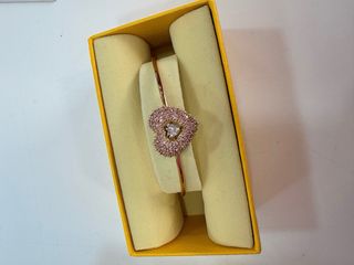 Elegante pulsera de la marca Swarovski. - Diseño abierto. - Adornada con cristales. - Acabado en tono dorado. Pulsera oro rosa Swarovski Brillantes Puesto 5 veces Tiene pequeños defectos del color material - se aprecian fotos