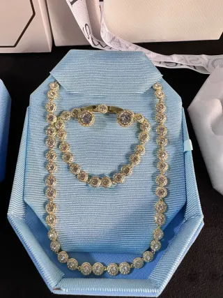 Elegante conjunto de joyería de la marca Swarovski y de la colección angelic - Collar con piedras de cristal - Pendientes a juego. - Pulsera a juego. - Incluye caja y bolsa de la marca.
