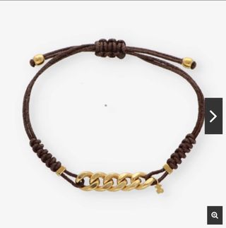 Pulsera Tous con cadena de eslabones de oro de 18kt y detalles dorados. Cordón trenzado de cordón marrón ajustable. - Cordón marrón ajustable. - Cinco eslabones centrales dorados. - Pequeño charm de oso. - Cierre con nudos.