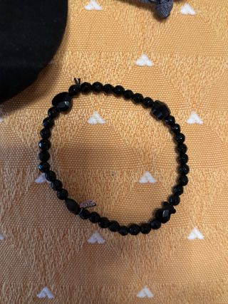 Pulsera elástica de la marca Tous con cuentas de ónix. - Diseño con cuentas facetadas. - Detalle de osito. - Cierre elástico.