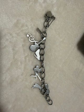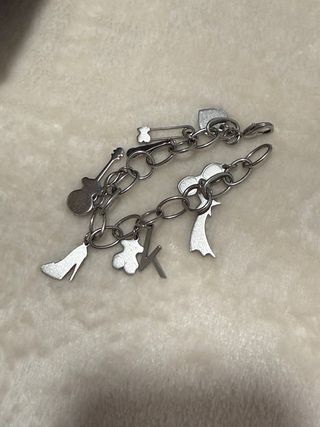 Pulsera Tous con varios dijes. - Dijes de zapato de tacón, oso, K, guitarra, corazón, nube y estrella fugaz. - Cierre de mosquetón.