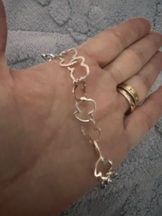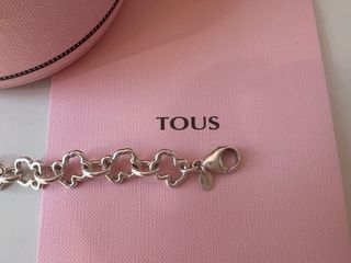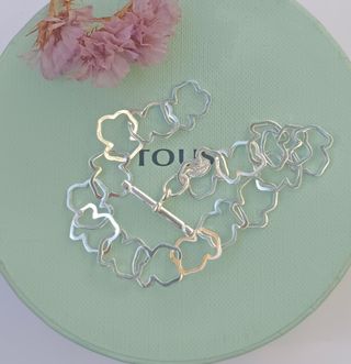 Elegante pulsera de la marca Tous, con un diseño delicado de osos entrelazados. - Original (no encuentro el certificado) se puede llevar a tienda y allí mismo confirman la autenticidad. - Plata 925. - Cierre de tipo T-bar. - Se entrega con caja y bolsa Tous. - Medidas 18cm. - PRECIO NO NEGOCIABLE