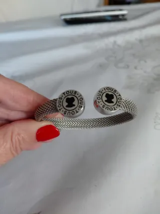 Pulsera Tous Basics de acero con el nombre de la marca y el icónico oso calado. En muy buen estado, sin daños ni arañazos importantes. Ideal para complementar cualquier estilo, desde casual hasta más elegante. Más información por privado. 📥