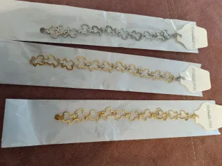 Conjunto de tres pulseras con diseño de ositos. - Una pulsera en tono plateado. - Dos pulseras en tono dorado.