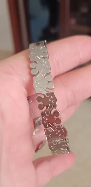 Elegante pulsera de la marca Tous. - Diseño con motivos de ositos. - Color plateado. Sin broche, habría que arreglarla.