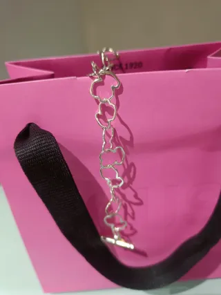 Pulsera TOUS original, de plata, con el famoso osito rosa claro. Está totalmente nueva, nunca se ha usado. - Diseño de osito. - Material: Plata. - Color del detalle: Rosa claro