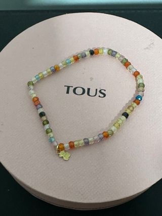Preciosa pulsera de la marca Tous con abalorios. - Diseño con varios abalorios de cristal. - Cierre de mosquetón. - Incluye charm de osito.