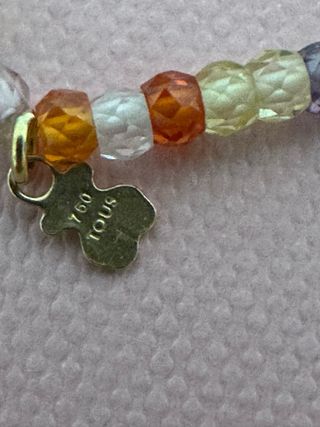 Pulsera de la marca Tous con un diseño original y llamativo.espectacular pulsera de gemas naturales grandes, pulsera icónica de Tous, 19ctros aproximadamente ya descatalogada,se encuentra en perfecto estado,el certificado ya está borrado por el paso del tiempo se borra, original 100/100 - Piezas con forma de osito. - Enganches metálicos. - Variedad de colores vibrantes. Plata y Gemas de colores,es el tamaño más grande de esta pulsera,el precio de venta q pongo son 80€ un precio muy por debajo de su valor por lo q me es imposible rebajar más,no se aceptan ofertas