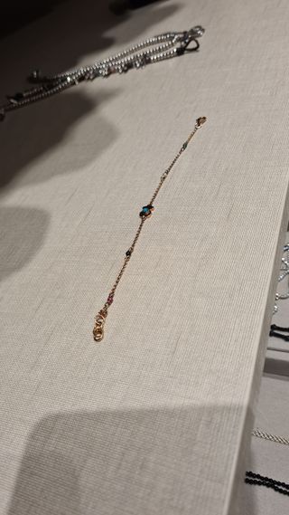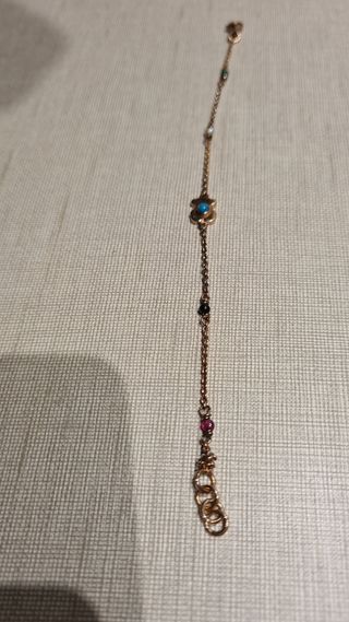 Estilo romántico y bohemio: Los múltiples colgantes le otorgan un carácter único que destaca en cualquier ocasión, haciéndola perfecta tanto para el día como para la noche. Características: - Material: Oro de 18 quilates auténtico, garantizando calidad y un brillo duradero. - Contraste - Hallmark: Sí. - Peso total: 7.1 gramos. - Largura: 17.8 cm, ideal para adaptarse cómodamente a tu muñeca. - Estado: En excelentes condiciones, como nueva.