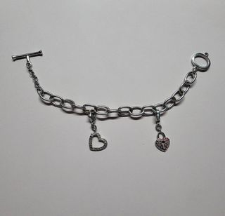 Elegante pulsera de la marca Swarovski con varios charms. A un corazón le faltan 3 piedrecitas y a otro 5, por eso el precio tan bajo Muchas más joyas en mi perfil! Descuentos por lote. Cualquier duda o más fotos, preguntar sin compromiso!