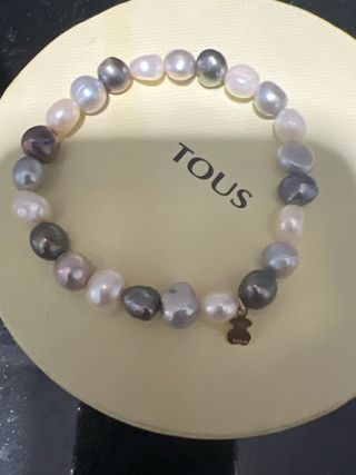 Elegante pulsera Tous con perlas de diferentes tonalidades. - Perlas de color rosa y negro. - Diseño único y moderno.
