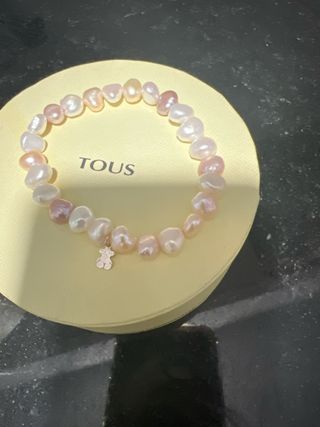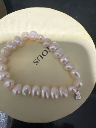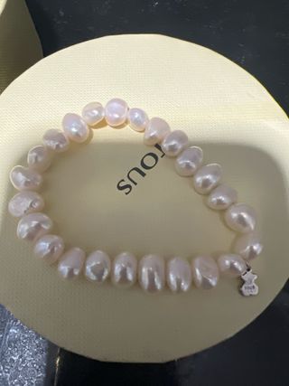 Elegante pulsera de la marca Tous con perlas nacaradas y un charm de osito. - Perlas de forma irregular y acabado nacarado. - Charm de osito distintivo de la marca.