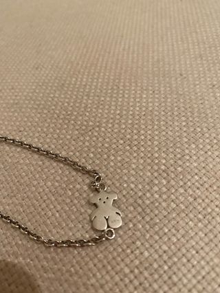 Elegante pulsera de la marca Tous con diseño de ositos. Largo 19 cm. - Fabricada en plata. - Cierre de tipo T.