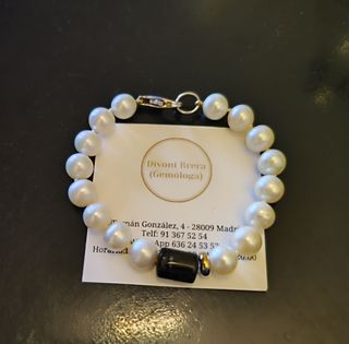 Vendo elegante pulsera de la reconocida marca española Divoni Brera. Es una joya de calidad con materiales excelentes. Marca: Divoni Brera Materiales: Perlas cultivadas de agua dulce y una cuenta central de ónix negro. Detalles: Cierre seguro de plata de ley 925 (sellado). Las perlas tienen un tamaño de 8-9 mm. Estado: nueva, sin usar. Estilo: Diseño atemporal, elegante y versátil, fácil de combinar.