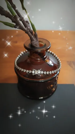 Elegante pulsera de plata estilo "tenis" con un diseño delicado y cristales símil brillantes. Medida muñeca en imagen