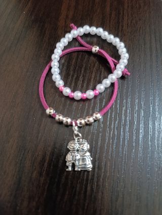 Preciosas pulseras hechas a mano, ideales para añadir un toque de estilo a tu look. Se venden tres pulseras en total, cada una con un diseño único y encantador. - Materiales de alta calidad. - Diseño delicado y femenino. - Perfecto estado.