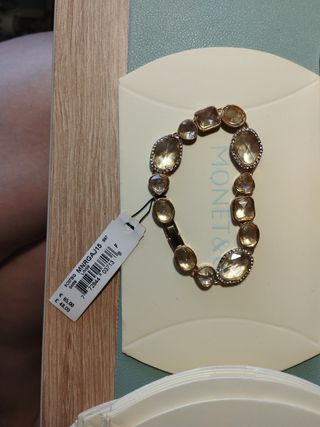 Elegante pulsera de la marca Monet, con un diseño delicado y brillante. - Detalles de diamantes. - Acabado dorado.