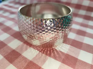 Elegante pulsera con un diseño martillado. - Acabado metálico brillante. - Estilo abierto y moderno.