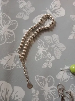 Pulsera de bolitas plateadas.otra de piedras de co