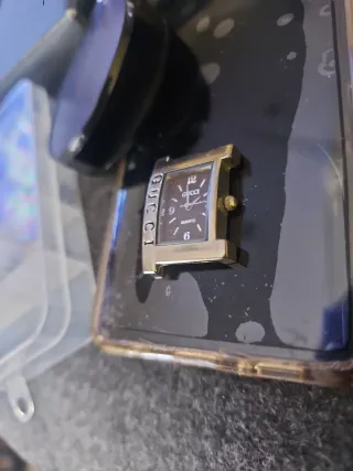Reloj de pulsera con diseño clásico de la marca Gucci. Sin correa no funciona. Para reparar - Esfera marrón. - Caja metalica - Mecanismo de cuarzo Swiss
