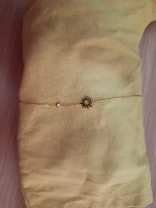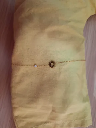 Elegante pulsera con un diseño delicado. - Cadena fina en tono dorado. - Colgante con forma de sol. - Pequeña circonita brillante.