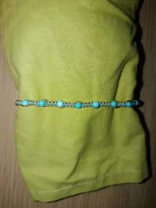 Conjunto de rosario y pulsera con cuentas turquesas y tejido con hilo marrón. Macramé - Diseño con cuentas de piedra turquesa. - Incluye un colgante en forma de cruz en el rosario. - Pulsera a juego con una cruz. - Cierre de hilo. Entra por el cuello. Se puede vender por separado 14.50 el rosario y 3 la pulsera. Juntos 16 Están hechos a mano por lo que puedo variar tamaños, diseños y colores. No dudes en preguntar